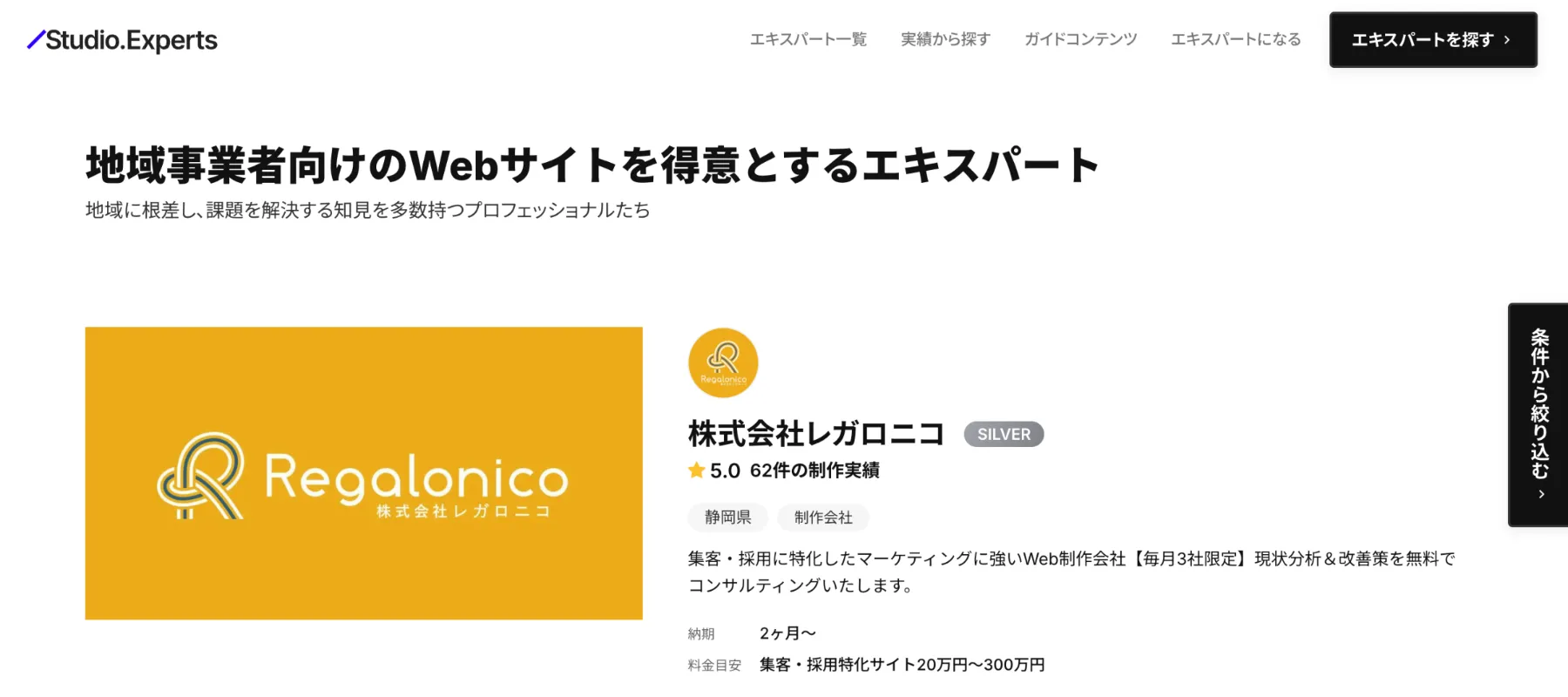 レガロニコがStudio.ExpertsのWeb制作会社の中で日本1位になりました!