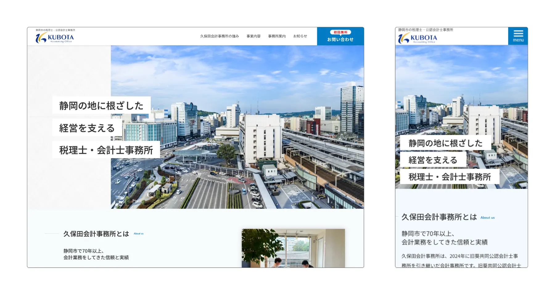 信頼と実績のアピール: 70年以上の歴史と実績を前面に打ち出し、訪問者に安心感を与える内容を充実させました。これにより、久保田会計事務所の信頼性を強調しました。