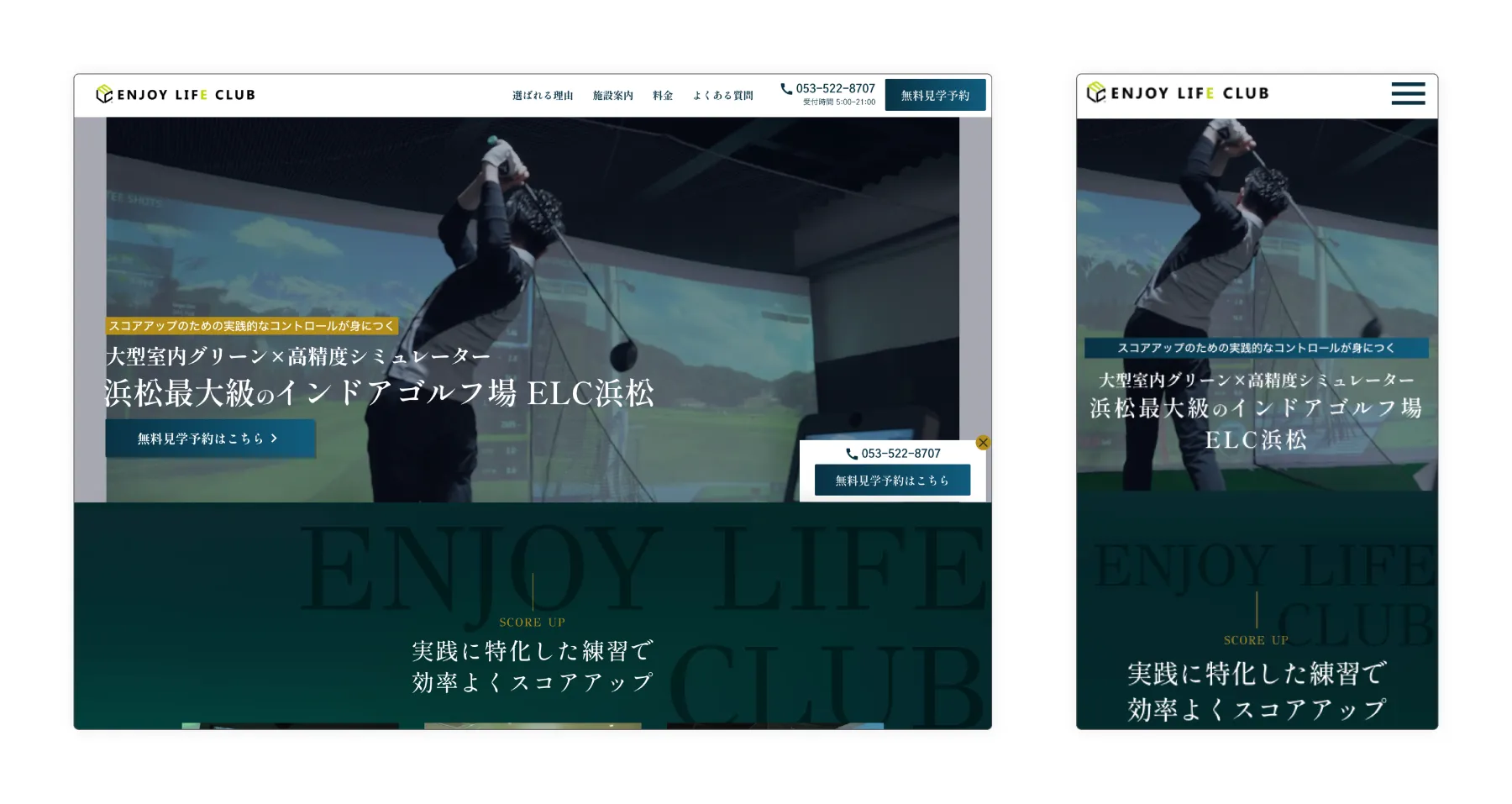 これらの取り組みにより、浜松市のインドアゴルフ場「ELC浜松」様は、見学問い合わせの増加と新規会員の獲得に成功しました。