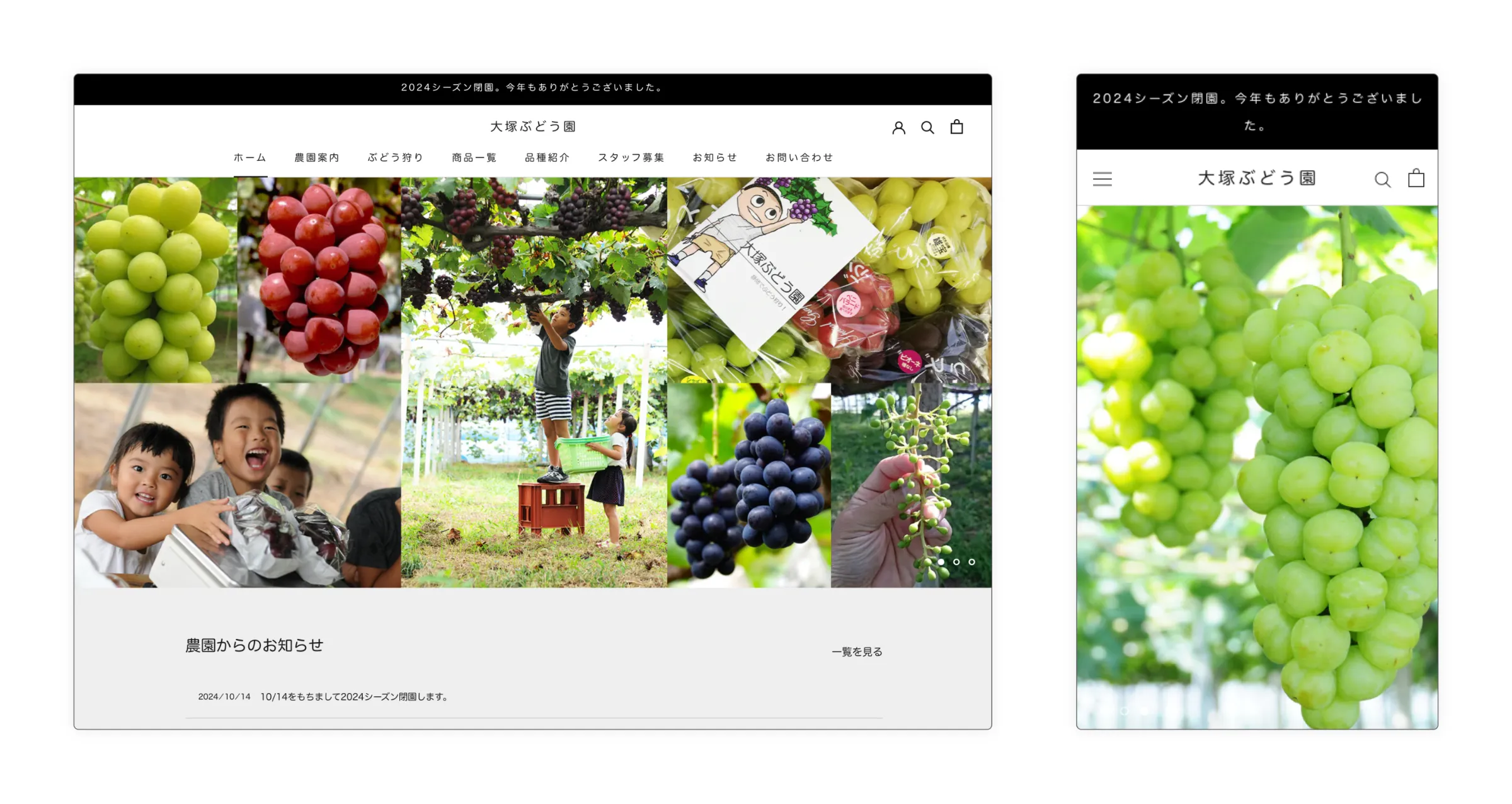 静岡県静岡市でぶどう農園の運営を行っている大塚ぶどう園様のホームページ兼ネットショップを制作させていただきました。