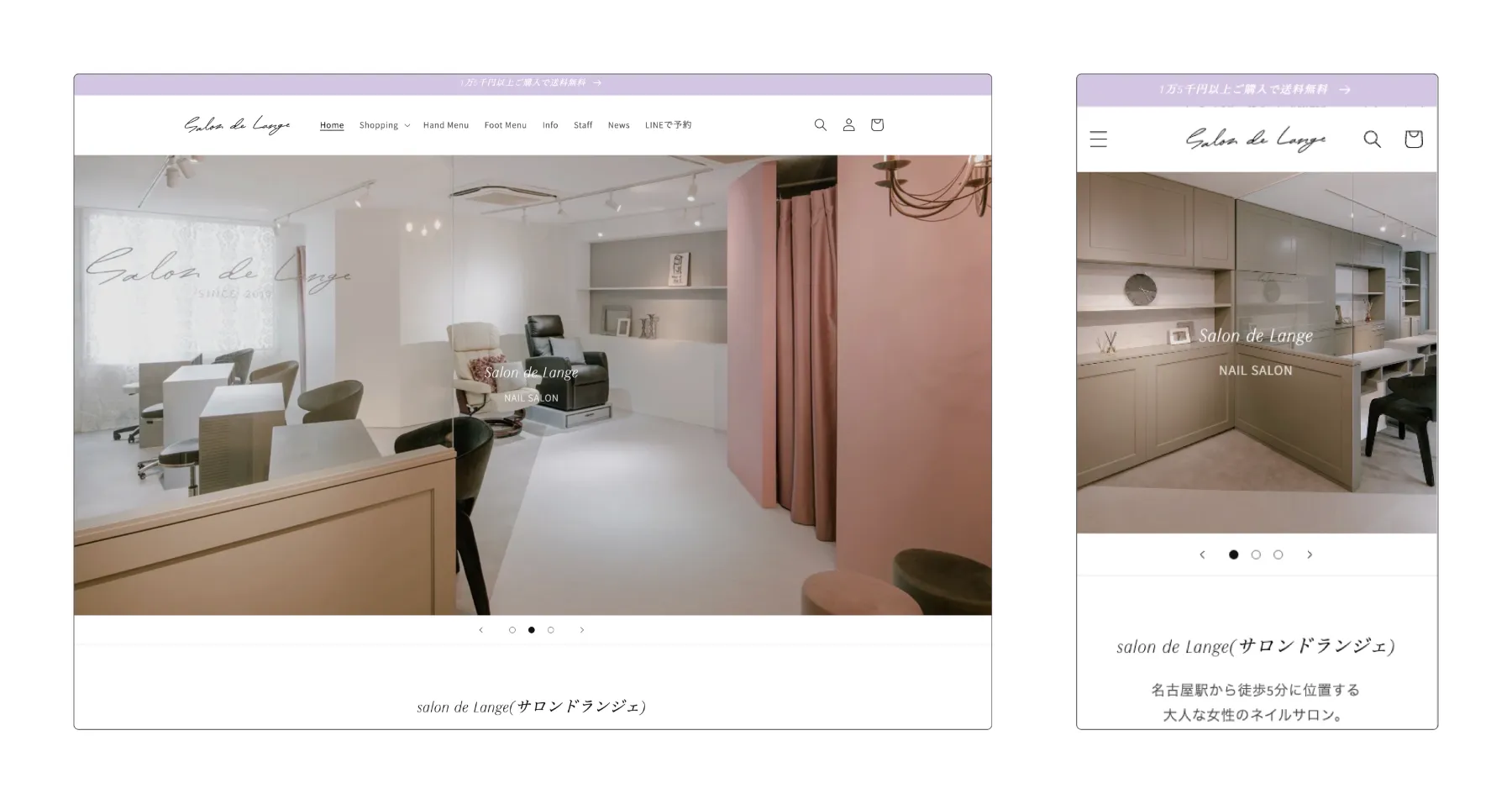 愛知県名古屋市の名古屋駅前でネイルサロンを営んでいるSalon de Lange様のホームページ兼ネットショップを制作させていただきました。