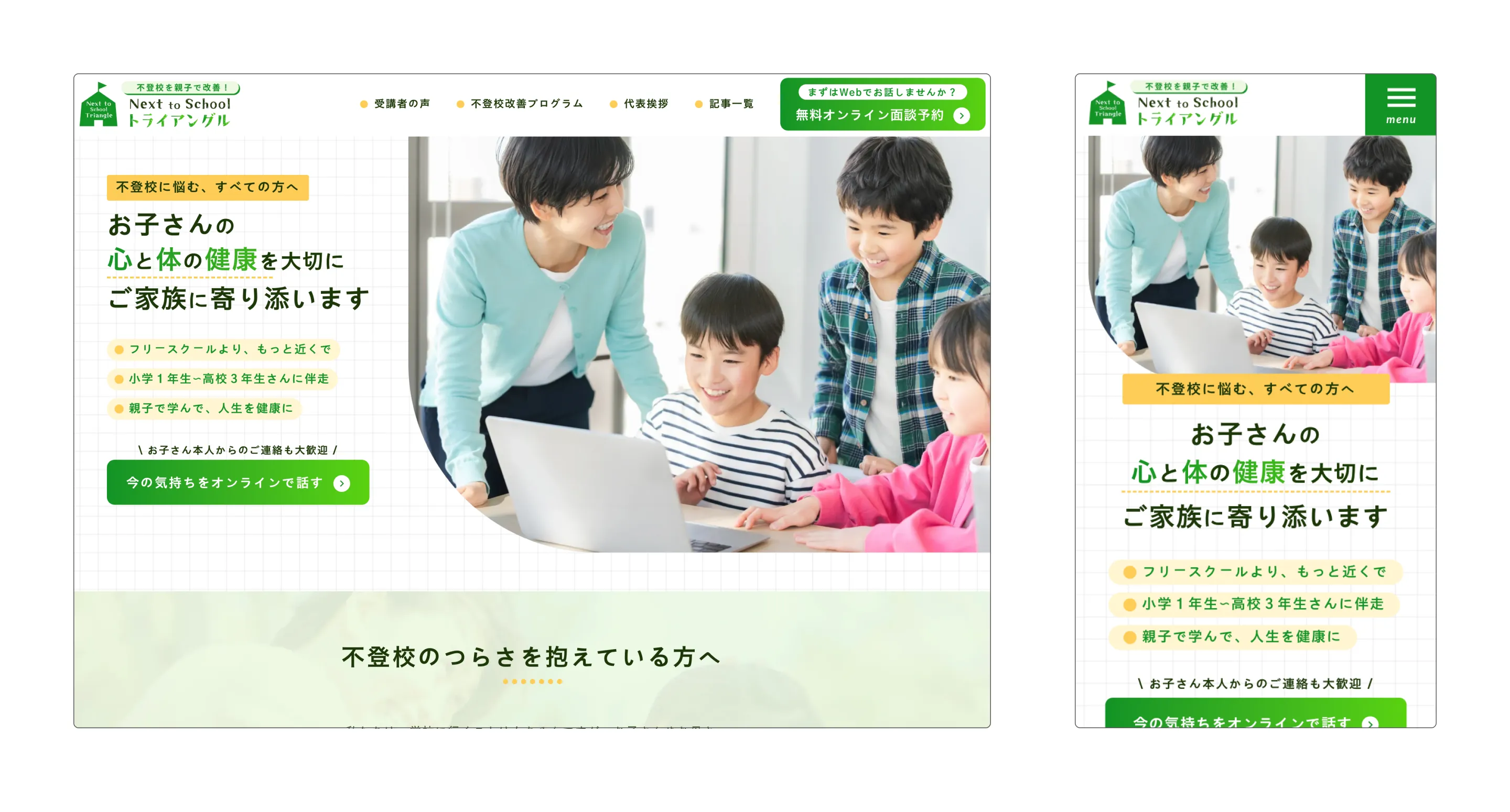 “親子で不登校を改善する”伴走支援を、信頼感あるホームページで可視化