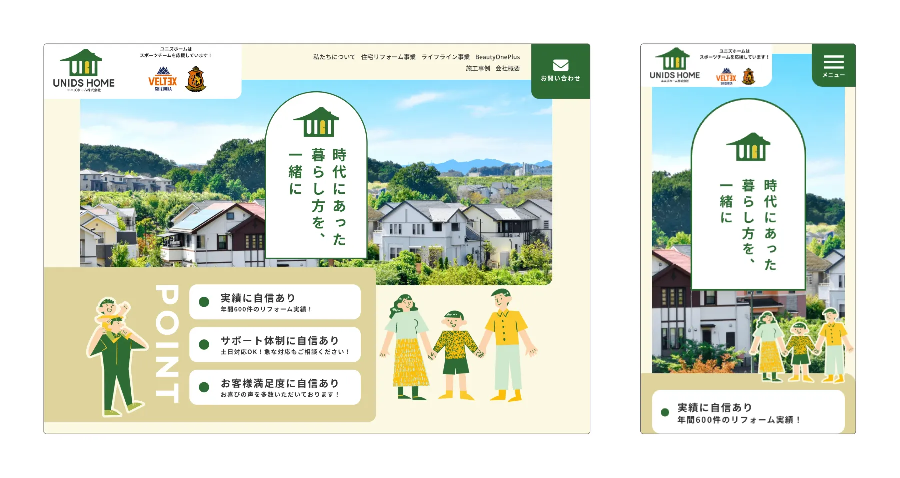 これらの取り組みにより、『ユニズホーム株式会社』様は自社の強みや確かな技術をアピールすることができ、お客様の声や施工実績を効果的に伝えることで、信頼感や安心感を与えるホームページを実現しました。